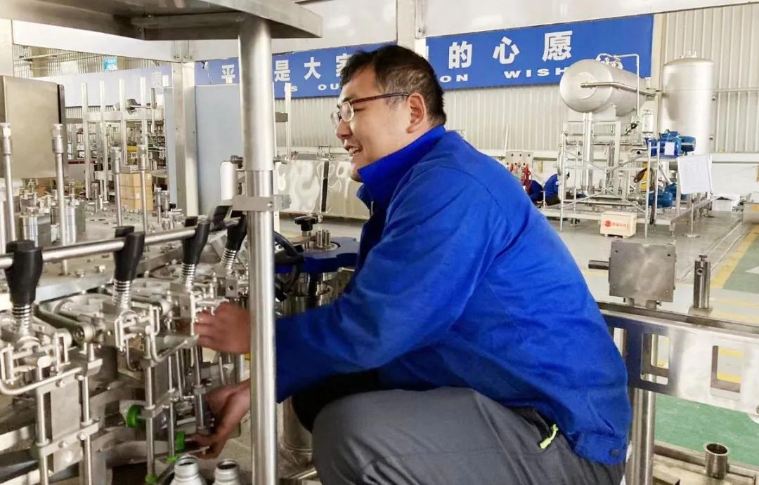 Yu Feiyang, who entered the factory in 2013, is a kind and lovable young man. After a period of hard study, he quickly mastered the skills of a toolmaker and has rich experience in assembling and adjusting various filling machines and unloading box machines. In 2021, Yu Feiyang spent more than 150 days traveling abroad, leaving footprints in Qingdao, Pingdu, Jining, Kunming and other cities. He provided excellent installation services and technical guidance for many customers, including Qingdao Kelan, Jining Dexin Brewery, and Shandong Jinwang, and received many letters of commendation from customers.