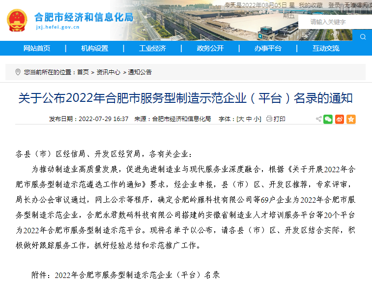 Source: Website of Hefei Economy and Information Technology Bureau